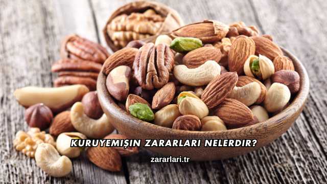 Kuruyemişin zararları genellikle yüksek yağ ve kalori içeriğinden kaynaklanır; bu nedenle kontrolsüz tüketildiğinde kilo artışına ve sindirim sistemi sorunlarına yol açabilir. Ayrıca tuzlu ve kavrulmuş çeşitleri fazla tüketildiğinde kan basıncını yükseltebilir ve sodyum dengesini bozabilir. Alerjik bünyelerde reaksiyon riski yüksek olduğundan dikkatli tüketilmesi önem taşır ve çocuklarda miktar kontrolü daha hassas yapılmalıdır.